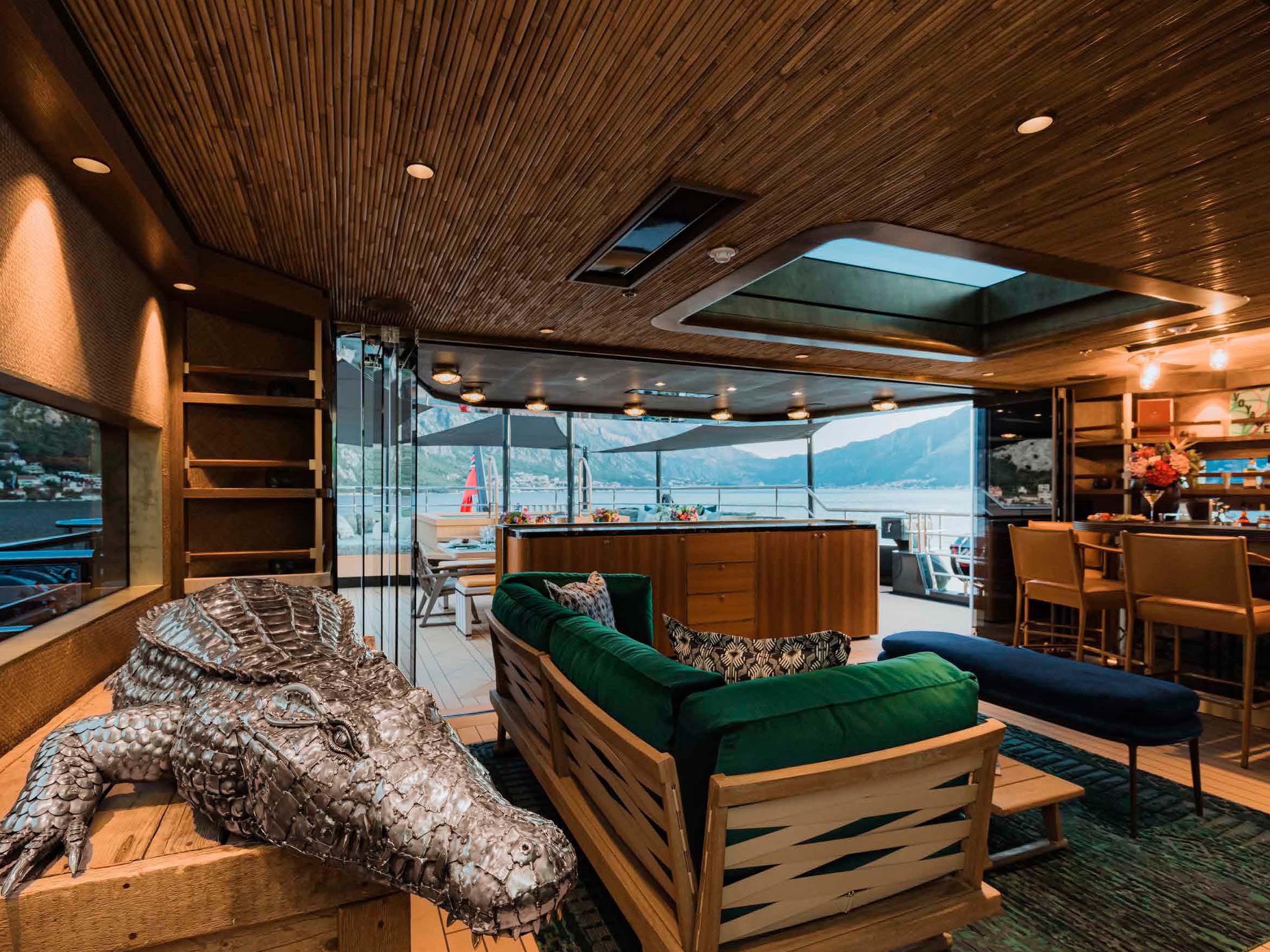 Expect the unexpected. Rich in colour, texture and eye-catching artwork, staying aboard Pink Shadow truly allows you to explore the world in style. With her unique interiors paying homage to the Amazon, you’ll be immersed in the jungle as you move throughout the yacht.